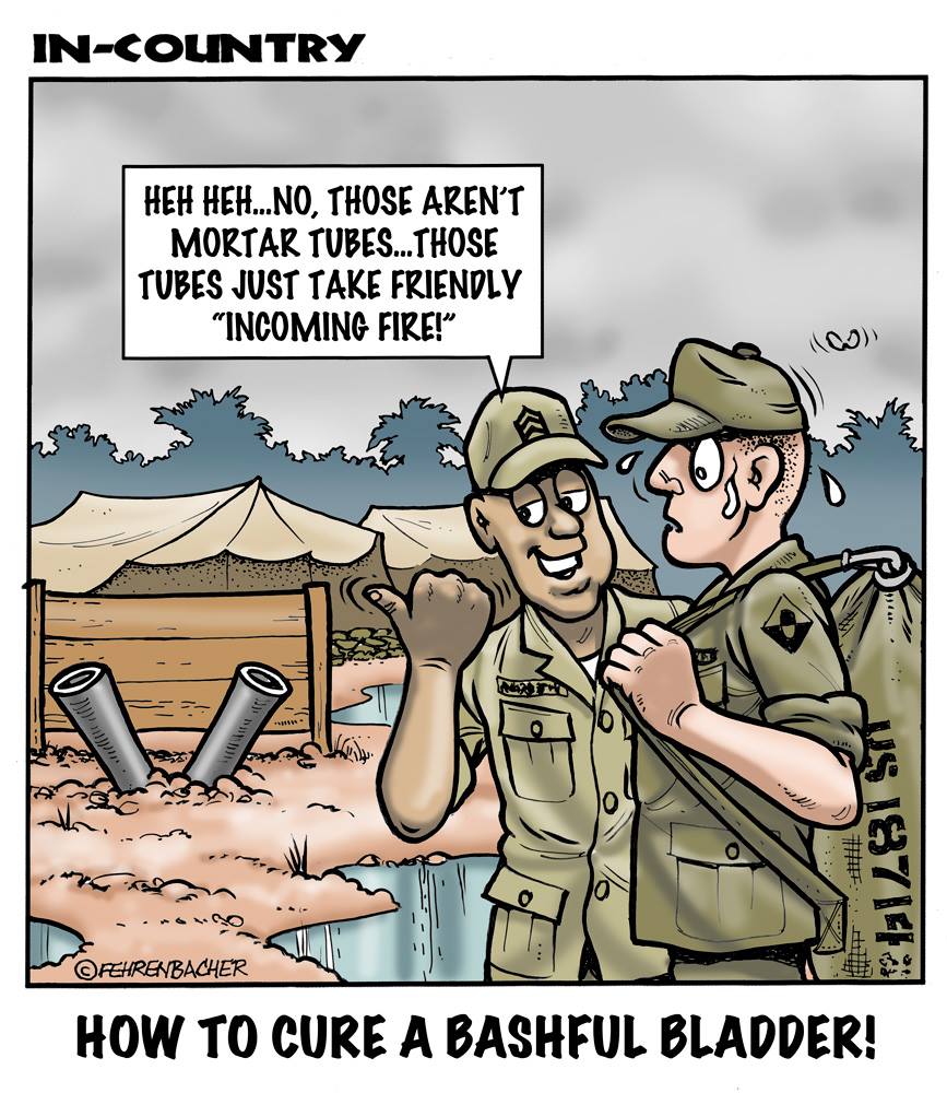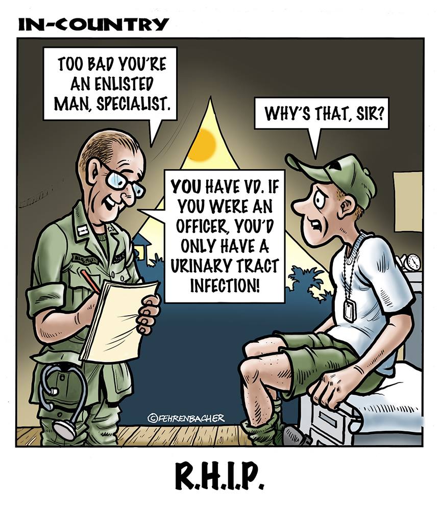 Phil enlisted in the Army in 1965 where he served for years in Vietnam. He became a graphic designer and has worked for the state of Oregon for 26 years. He retired in 2003 and started the Cartoon "In-Country". The cartoons reflect his experiences during his tour of duty in South Vietnam.